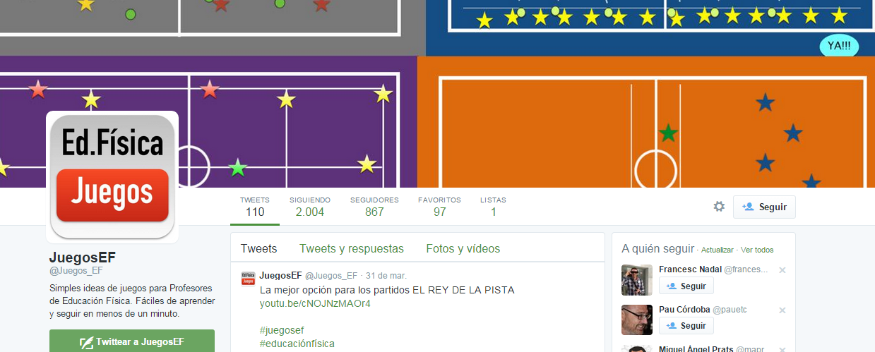 Buscando por allí encontré la cuenta de Twitter @Juegos_EF que contiene una gran cantidad de videos con juegos para profesores de Educación física.